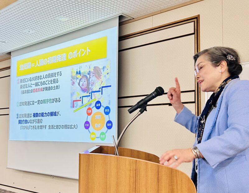 講演は、日本こども成育協会理事であり、「ひらけ!ポンキッキ」や「しまじろう」の監修でも知られる発達心理学者・沢井佳子先生。